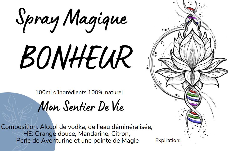 Vous apportera de la magie avec son mélange d'huiles essentielles de haute qualités aux parfums des agrumes. chaque flacon a une perle de Aventurine pour attirer le Bonheur autour de vous et dans votre vie Il peut être utilisé sur des objets ou simplement dans des chambre de votre maison